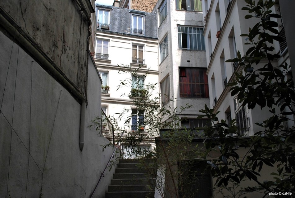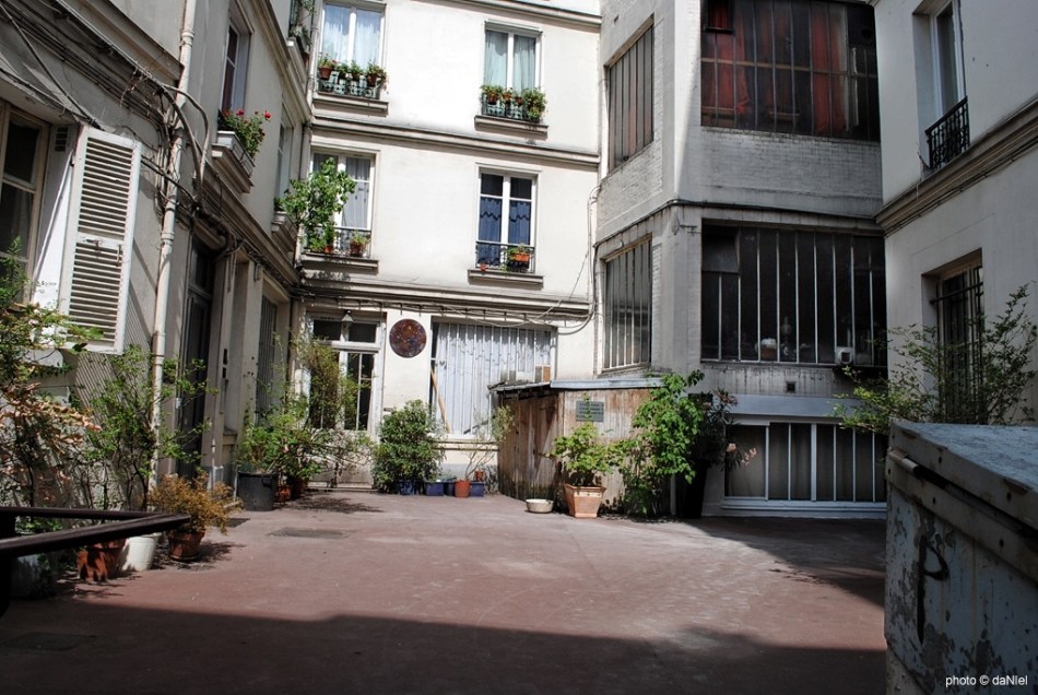 ヴィレット大通り沿いの、あるアパルトマンのメイン・ドアを開くと・・・禅風の庭に遭遇する。その中庭は、当初、アパルトマンの共有地主たちの意向でセメントで固められた・・・。