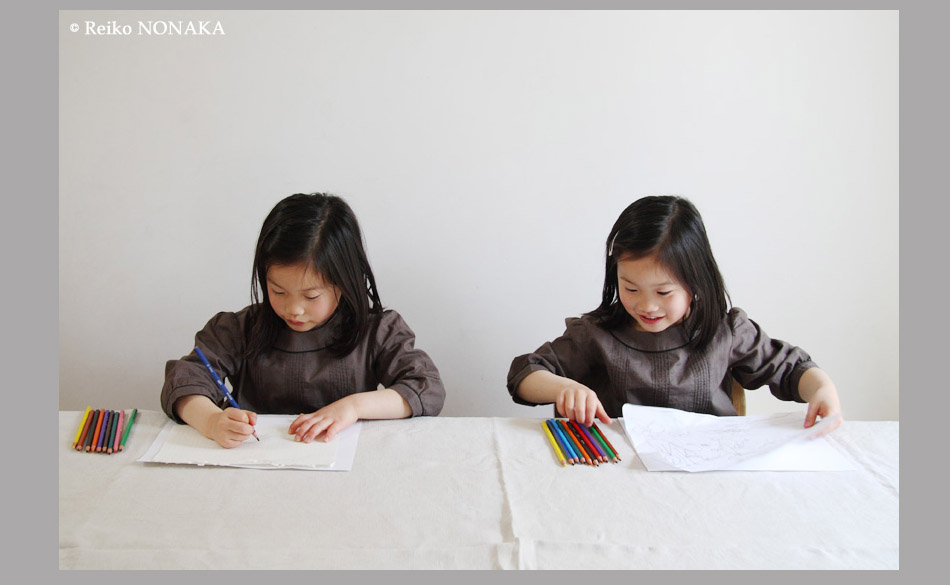 Reiko:私は双子なので、双子の特別な関係がとてもよくわかります。両親でもなければ、兄弟でも姉妹でもなく、私の双子の妹は私の一部なんです。私が写真をやっているのは、私が双子だからかもしれません。私達はお互い鏡のように映しあっている。写真も一種の映り込んだ像ですし・・・でも、まだまだもっと深く研究しなくてはいけません。このテーマは、一生かけて取り組みたいと思っています。