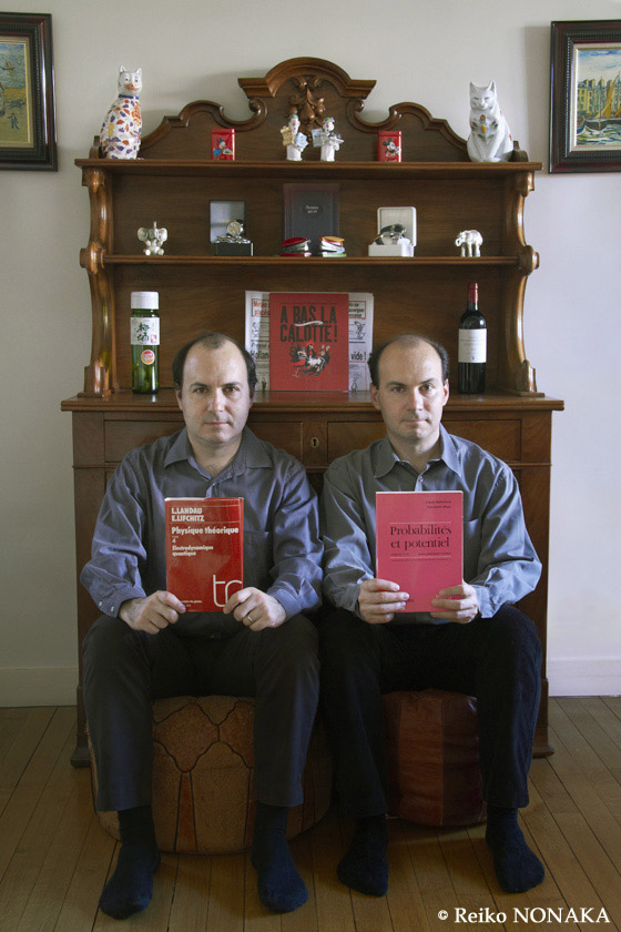 Dans l’enfance, nous partageons complètement nos vies, tout est en double. À partir d’un certain âge, nos chemins se séparent et nous vivons chacun de notre côté, mais le fil qui nous relie ne se rompt jamais. La gémellité, c’est comme une image symétrique pliée en deux. Il y a deux figures presque pareilles avec juste de petites différences. Le pli au centre est un point de contact, une partie partagée qui relie toujours les deux. Certes, nous sommes physiquement deux personnes, nous avons chacun une vie, mais le fait d’avoir partagé le ventre d’une mère avant la naissance crée entre nous des liens très forts à un point difficilement imaginable. La gémellité, c’est un doublement de vie. Depuis le départ, nous formons un ensemble et nous vivons une « double vie », parfois partagée et parfois séparée, pour toujours. »