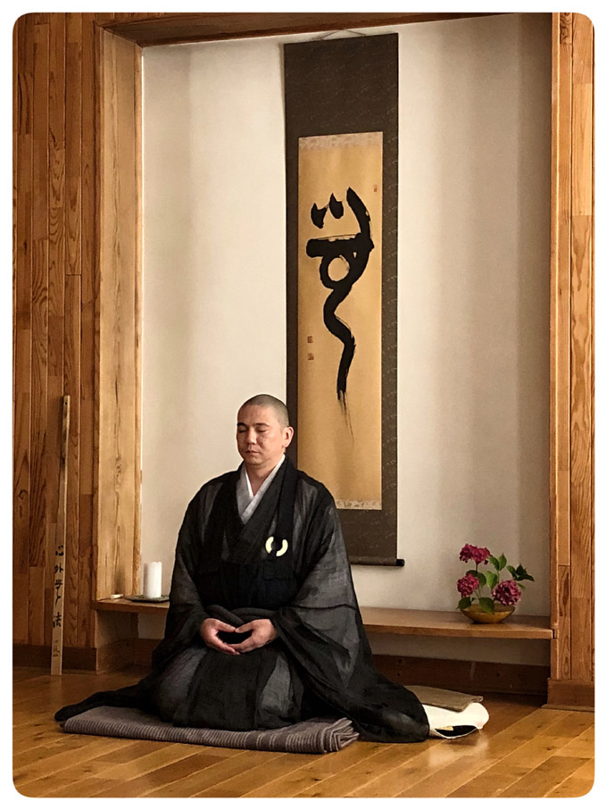Ryôsan : Effectivement, j’ai l’occasion en France. Dans le temple de mon père aussi, j’ai parfois l’occasion de réunir quelques personnes ou des amis pour leur apprendre l’assise. Seulement, dans le temple de mon père, je suis sous la responsabilité de mon père, donc je ne peux pas faire exactement comme je l’entends. Je dois suivre …
