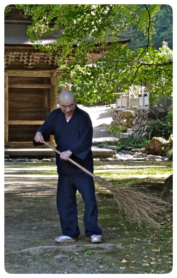 Ryôsan : (rires) Difficile de répondre à cette question car la vie monastique avec ses entrainements était quelque chose de naturel pour moi. C’était ma vie, cela faisait partie de ma vie. Au début, lorsque j’ai commencé mes entrainements, je n’étais pas très à l’aise avec la méditation assise, j’avais mal aux jambes, alors je préférais faire le samu, c’est à dire le nettoyage, en utilisant mon corps. Aujourd’hui, tout cela est mon quotidien, je ne me pose pas la question pour savoir si j’aime ou pas, c’est comme ça. Mais si je prends la peine de réfléchir, bien évidemment, il y a des choses qui sont pour moi, plus faciles que d’autres.