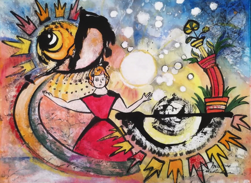 Mone UCHIDA : Je pense qu’en moi vivent beaucoup de personnalités différentes. Suivant les rencontres que nous faisons, nous changeons tous de personnalités. Lorsque je peins, il y a au moins deux caractères différents qui s’expriment. Il y a une partie de moi soucieuse d’avenir, qui veut réussir, qui se projette dans l’avenir… et puis une autre partie qui est plus insouciante, plus joyeuse et je deviens l’enfant qui dessine…