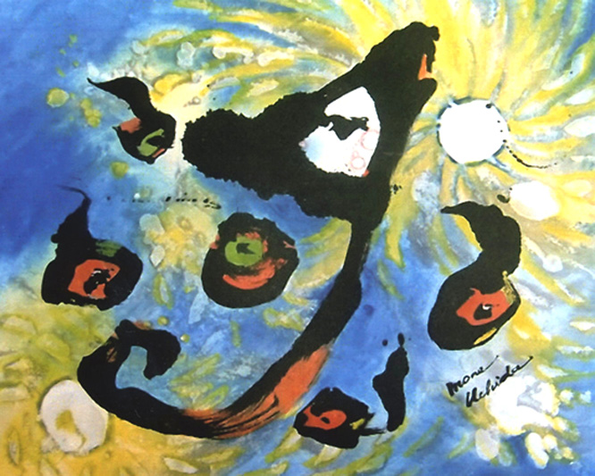Au cours de l’été 2014, en compagnie de Madame Miki Iida et de Jean-Michel Jarillot, nous avons eu l’occasion de rencontrer l’artiste peintre et calligraphe, Madame Mone Uchida près de Tokyo. je suis reconnaissant à Madame Uchida de m’avoir permis d’aborder librement avec elle, les thèmes qui m’intéressaient à l’époque. Et il me semble rétrospectivement, que cet entretien est précieux parce que son témoignage est sincère et son expérience est rare..