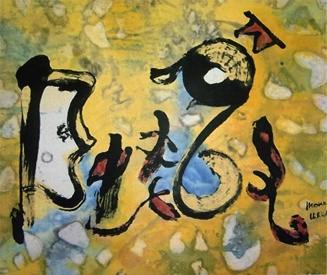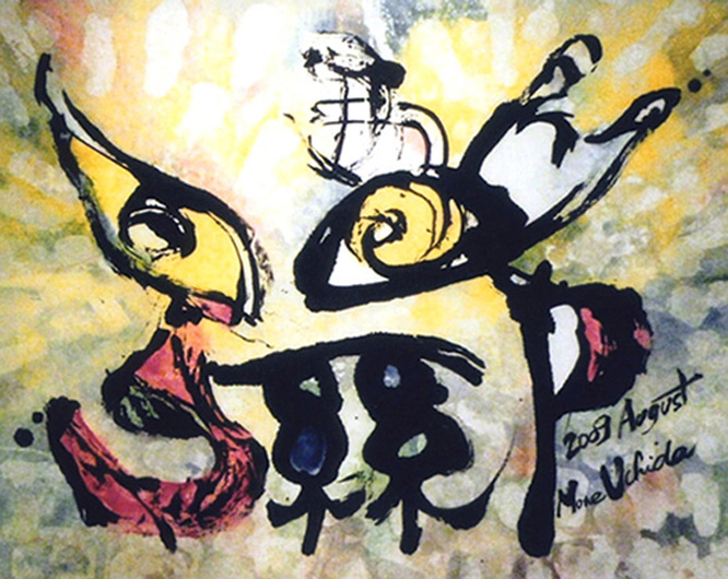 Mone UCHIDA : Dans ma famille il n’y avait pas d’artiste à proprement parler, mais mon père était sensible à l’art de la calligraphie. Il m’a trouvé un professeur et à l’âge de trois ans j’ai donc commencé à suivre des cours de calligraphie.