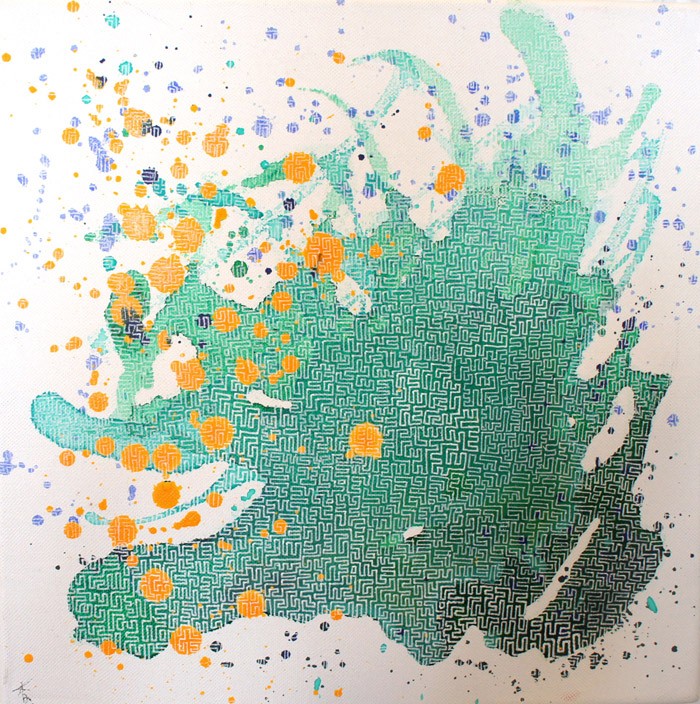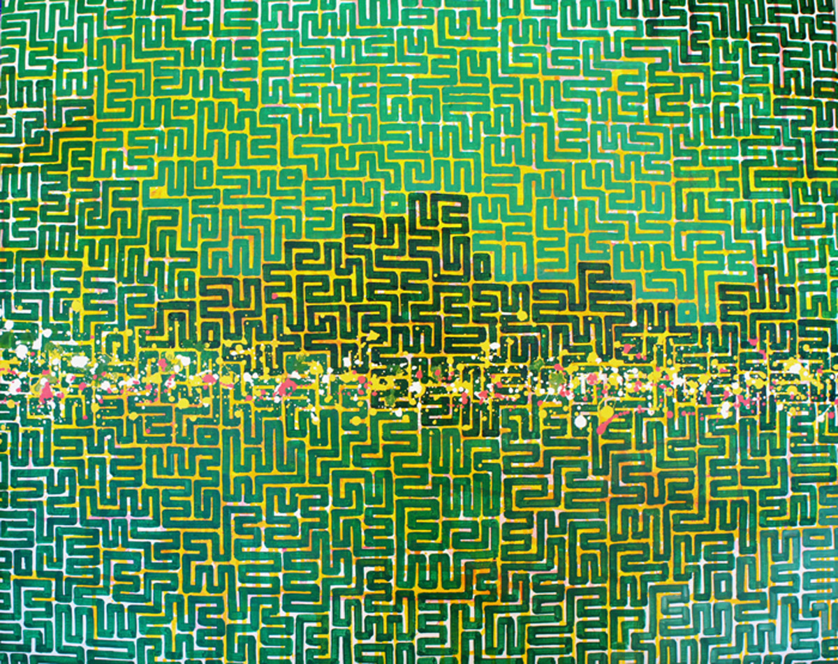 Je ne sais pas si mes tableaux reflètent ma vie, mais chaque fois que je les regarde, je pense qu’il s’agit bien de ma personnalité. C’est un dessin assez géométrique et carré, composé de lignes qui semblent droites mais en fait ne le sont pas. C’est un dessin dynamique mais en même temps très sensible. J’y vois toujours des oppositions.