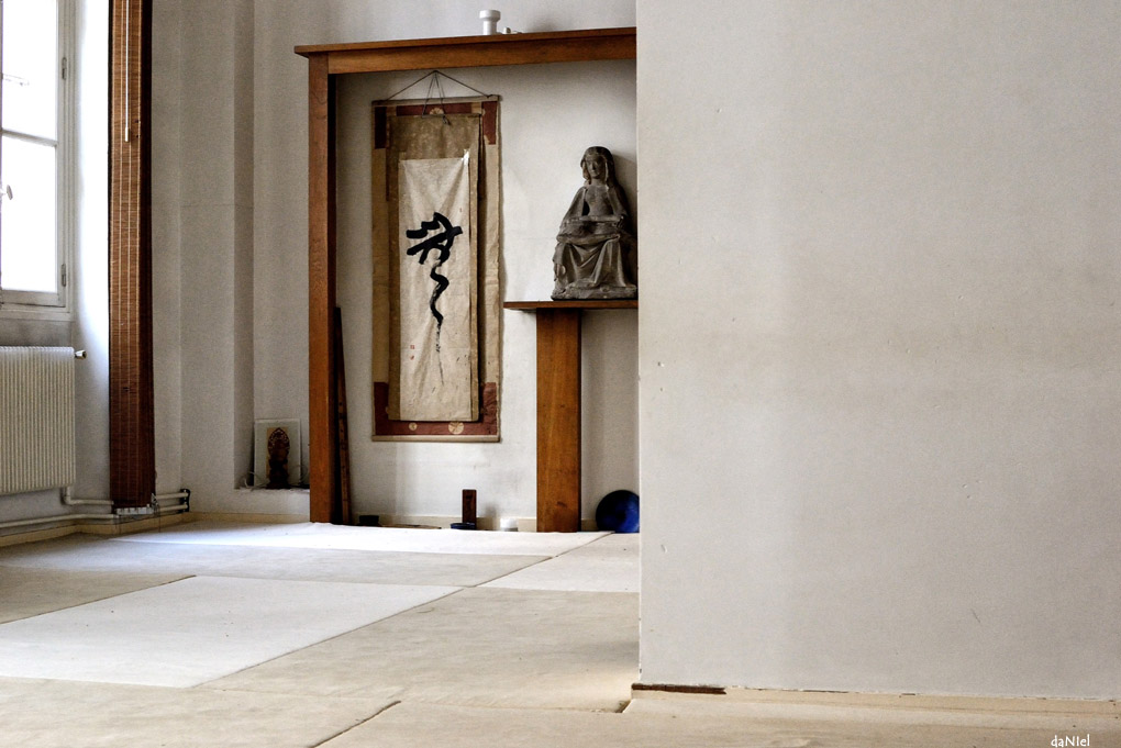 En haut de l’escalier, la porte était entrouverte, il a enlevé ses chaussures, prit un coussin et s’est assis avec tous, ils étaient au rendez-vous, pèlerins et pèlerines, arrivés là par bien d’autres routes, il était maintenant parmi eux et quelque chose s’est apaisé en lui, c’est peut-être son urgence qui a disparu. À partir de ce jour, celui de son premier zazen puisque c’est de cela dont il est question ici, le temps s’est ordonné enfin.