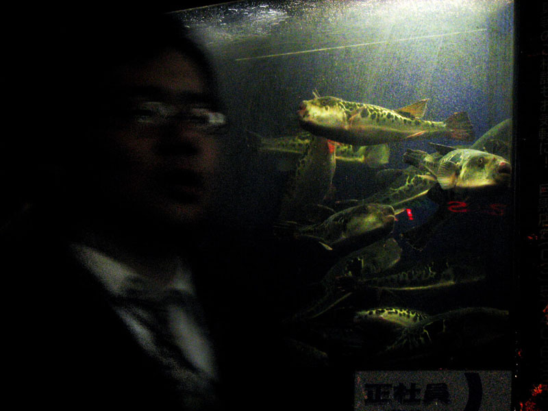 Daniel : Tu as fini par trouver un chemin plus évident pour toi. Il y a des choses très fortes dans tes photos… Dans ta série « Salaryman project », on ne voit que des bribes de décors et aussi des morceaux d’hommes, on ne voit jamais tout en entier, par exemple des gens sont cachés par un rideau, ou des gens passent derrière une vitre… Ce sont des corps en mouvements que l’on voit… Des trajectoires… Ce qui me fait dire que tu sembles être un photographe encore plus « immobile » que les autres photographes (rires). Je souhaite savoir si tous ces salarymens que tu photographies ont quelque chose d’inquiétant pour toi ?