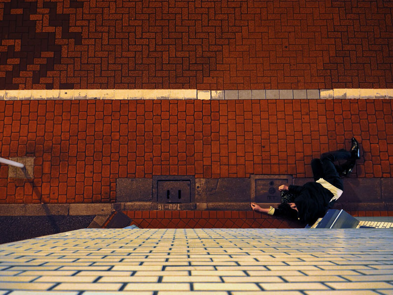 Bruno :Oui il m’a dit cela. Je ne sais pas s’il l’a vraiment fait mais en tous cas je pense que le poids du travail lui a fait projeter cette histoire dans cette photo ! Alors là, j’étais vraiment content ! Il m’a fait aussi remarquer que selon les lieux où je vais prendre mes photos, le degré de tension des gens change. Si on photographie quelqu’un qui sort de sa boîte, il va être tendu. Si on photographie cette même personne dans un quartier éloigné de sa boîte, il va être plus détendu. Il m’a fait voir un tas de choses que je n’avais jamais vues. De la part de cet homme qui se disait lui-même salaryman, j’ai eu un retour vraiment très enrichissant.