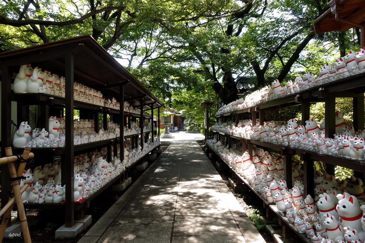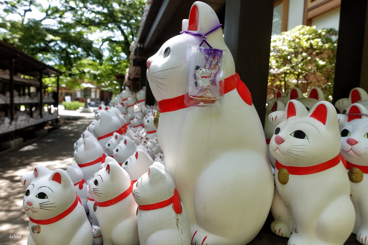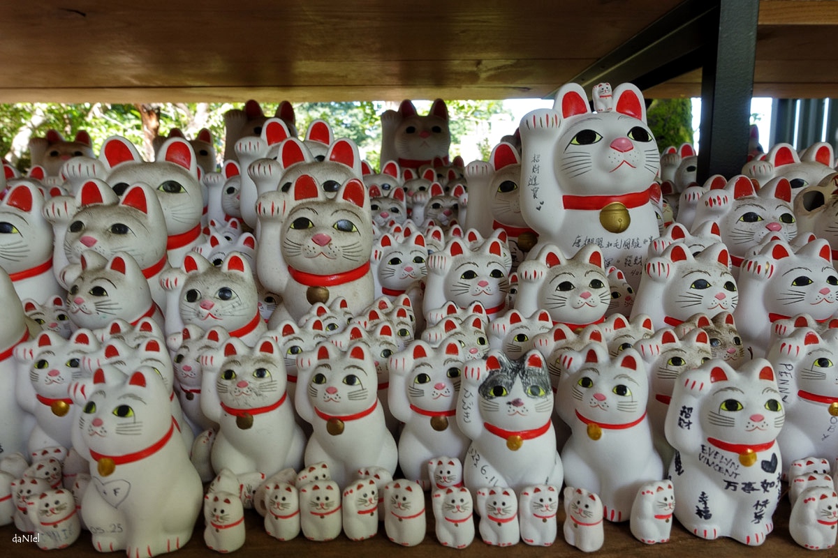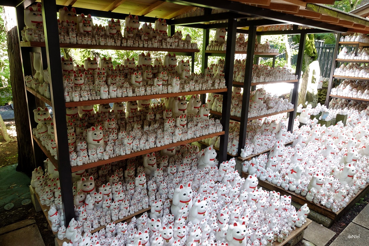 Gotokuji. Alignements de chats en plâtre et de pattes levées. On peut acheter les chats à la boutique du temple, on ne vient pas avec son chat et surtout on ne le place pas n’importe où devant les autres. Beaucoup de mots accompagnent les chats, des souhaits, des prières. Les moines s’en chargent. Il y a envahissement, il se dit que les moines doivent procéder à des purges régulières. Que deviennent les chats débarrassés ? Que deviennent les mots ? Pourquoi est-il venu ici ? Il s’efforce d’isoler parmi la multitude, une expression, un rictus, un appel à l’aide. Les chats demeurent indifférents. Retour en cellule fin d’après-midi. Dans les rues, pluie et chaleur. À peine la tête posée sur son oreiller, il plonge dans le sommeil et se réveille quand il fait nuit.